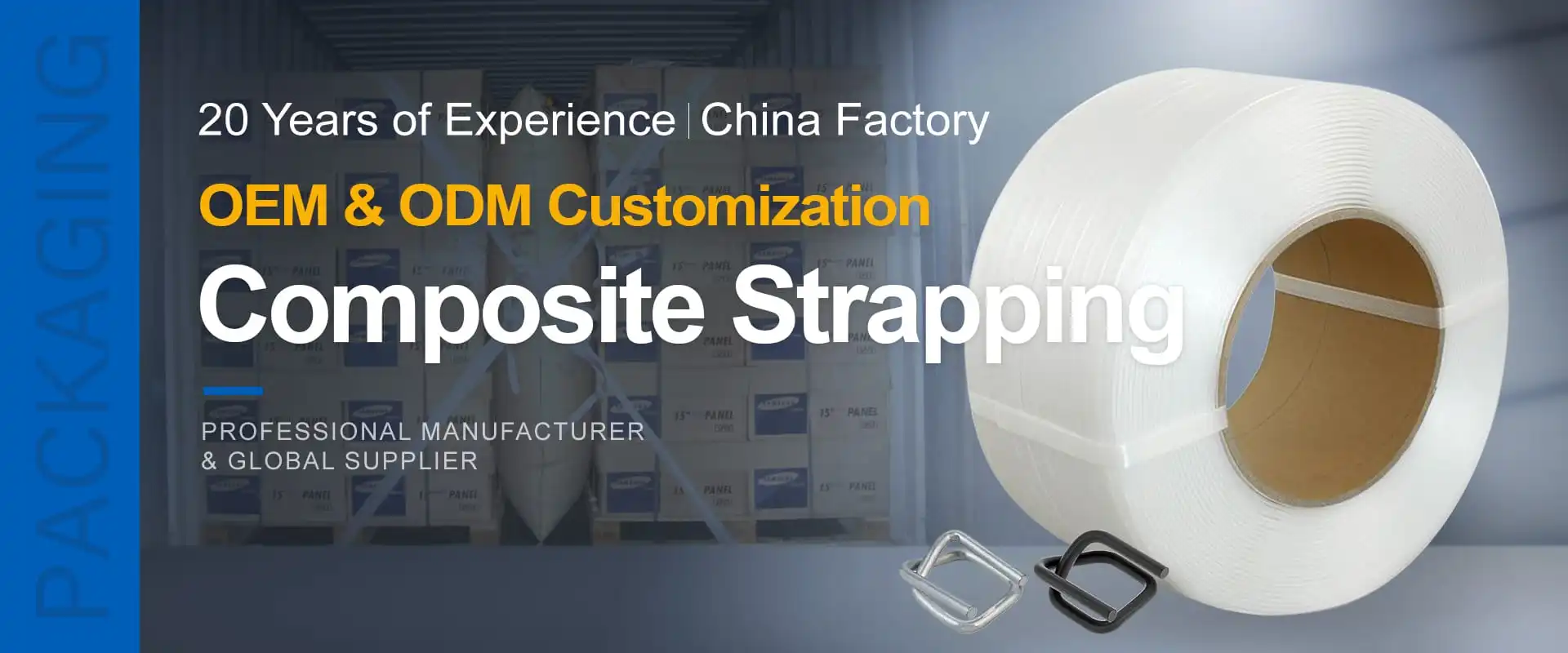 Polyester composite, PET, and PP straps for long-lasting strength and reliability.
