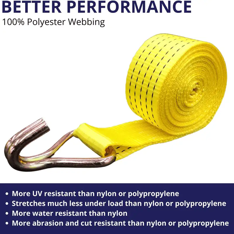 Buy 2″ wide, 50mm heavy-duty ratchet tie down straps with double J hooks. 8800 LBS working load, 10000 LBS break strength. Durable polyester webbing, steel ratchet, wear- and corrosion-resistant. Ideal for trucks, trailers, motorcycles, kayaks, and warehouse cargo. OEM & wholesale available.