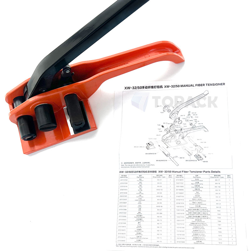 TOPACK tensioner for PP strapping and composite strapping is engineered to provide high-performance strap tensioning for rolls with 200mm core diameter. Suitable for 13mm/1/2” to 32mm/1-1/4” straps, this tensioner ensures secure, precise, and safe tightening.